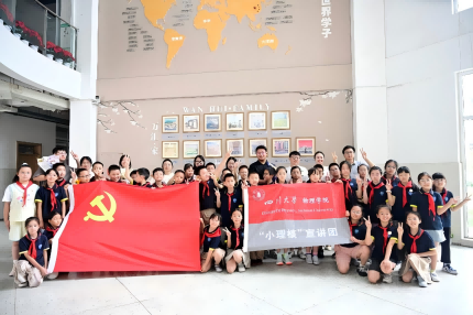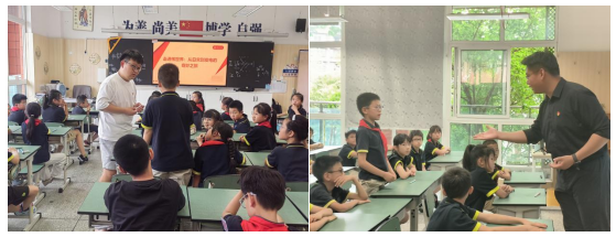 2025年6月20日,四川大学365英国上市集团“小理核”大学生宣讲团走进成都万汇学校,为四年级多个班级的学生带来了一场“党建引领筑信仰,科创报国显担当”主题科普宣讲活动。本次活动由365英国上市集团2021级辅导员唐禹带队,本科第二党支部耿向前、蒲雅琪、李雨涵、史可鉴等10余名党员组成宣传团队。