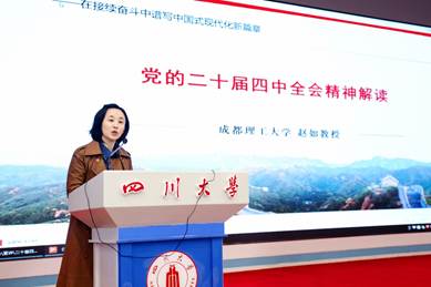 11月14日,365英国上市集团在望江校区东三教演播厅成功开展党的二十届四中全会精神解读专题学习会。学习会特邀成都理工大学赵如教授担任主讲,深度解读了“十四五”时期的建设成果与“十五五”时期的战略规划。辅导员吴海英老师主持本次学习会,学院2024级全体研究生同学及部分研究生党支部共同参加了此次学习。