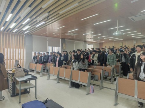 本次行课以“安全急救知识”为主题,旨在普及急救常识,增强学生应对突发状况的能力。活动在全体团员齐声高唱《中国共青团团歌》中拉开帷幕。随后,团支书熊子熙致开幕词。在课程环节,王医生围绕动物抓伤、食道梗塞等常见意外场景,系统讲解了相关急救措施与操作要点,引导同学们牢固树立“生命至上”的安全意识。现场学习氛围浓厚,学员们认真聆听、积极记录,展现出高度的学习热情。