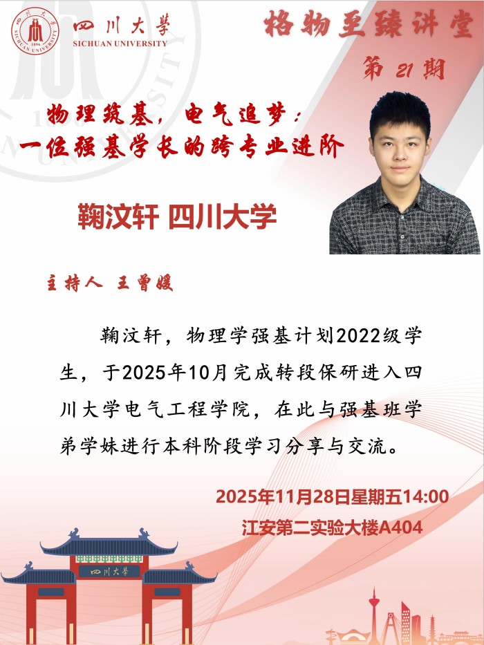 【学业指导】格物·至臻讲堂第21期:物理筑基、电气筑梦——一位强基学长的跨专业进阶