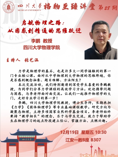 【学业指导】格物·至臻讲堂第28期:启航物理之路——从困惑到精通的思维跃迁