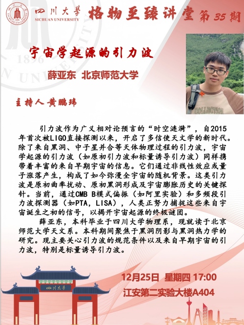 【学业指导】格物·至臻讲堂第35期:宇宙学起源的引力波