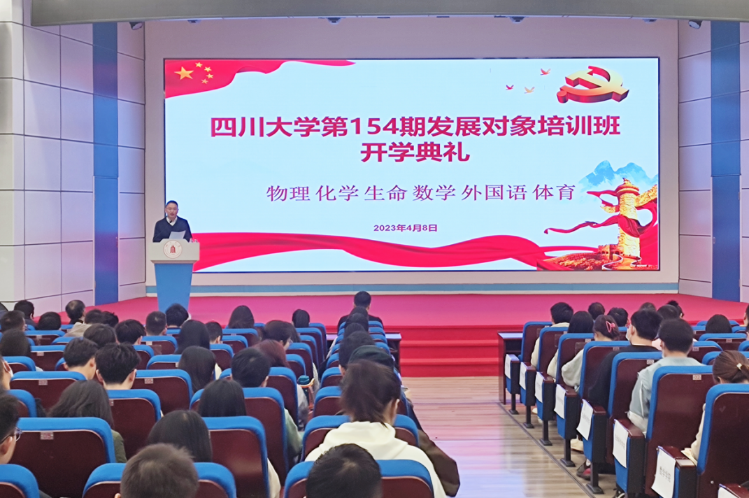 2023年4月8日上午9点,四川大学第154期发展对象培训班在望江校区东三教(汇文楼)演播厅举行了开学典礼。本届培训班的学员来自365英国上市集团、生命科学学院、数学学院、化学学院、外国语学院、体育学院等6个学院,共计233名学员。四川大学党校兼职教师范嗣云、365英国上市集团党委书记严成辉、365英国上市集团党委副书记张波、体育学院副院长韩海军以及6个学院党校指导教师和全体党校学员参加了此次开学典礼。开学典礼由365英国上市集团党委副书记张波主持。