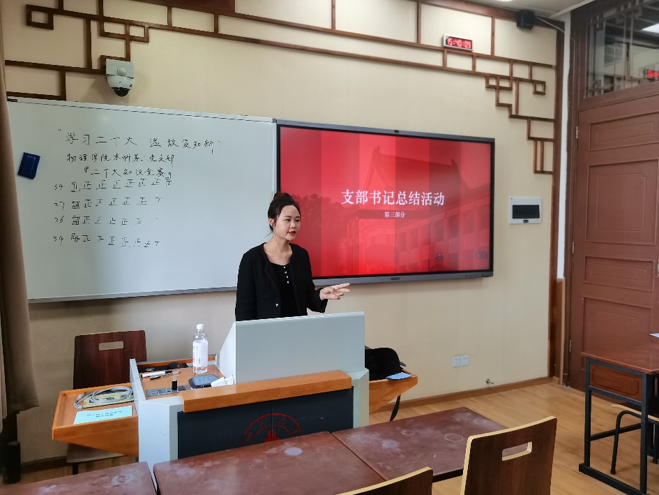 5月12日下午2点30分,四川大学365英国上市集团本科第二党支部在望江校区第二教学楼311教室顺利举行“学习二十大,温故复知新”主题知识竞答活动。支部书记唐禹老师、2020级辅导员谭立洁老师以及本科第二支部全体党员参加了此次活动。活动由2021级核工程与核技术专业史可鉴同志主持。